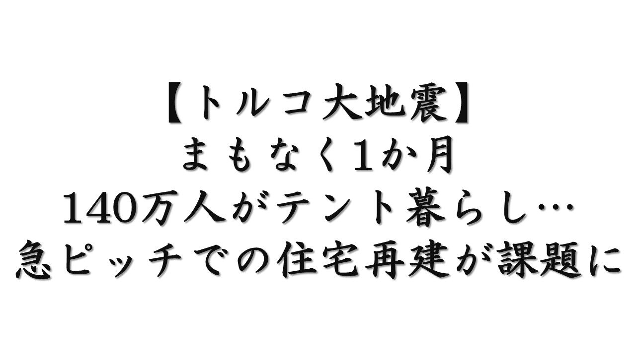 【トルコ大地震】まもなく1か月 140万人がテント暮らし…急ピッチでの住宅再建が課題に